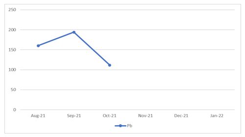| November 2021 | 1.24 a | 6.26 b | BDL | 37126.65 a | 326.47 c | BDL |
