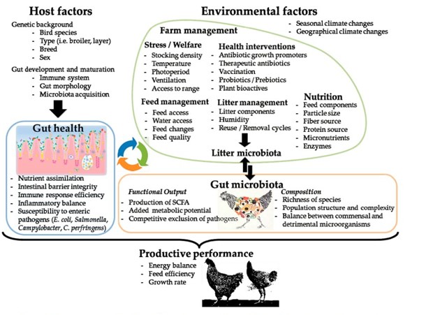 - Wickramasuriya, S. S., Park, I., Lee, K., Lee, Y., Kim, W. H., Nam, H., & Lillehoj, H. S. (2022). Role of physiology, immunity, microbiota, and infectious diseases in the gut health of poultry. Vaccines, 10(2), 172-184. DOI.10.3390/vaccines10020172.DOI